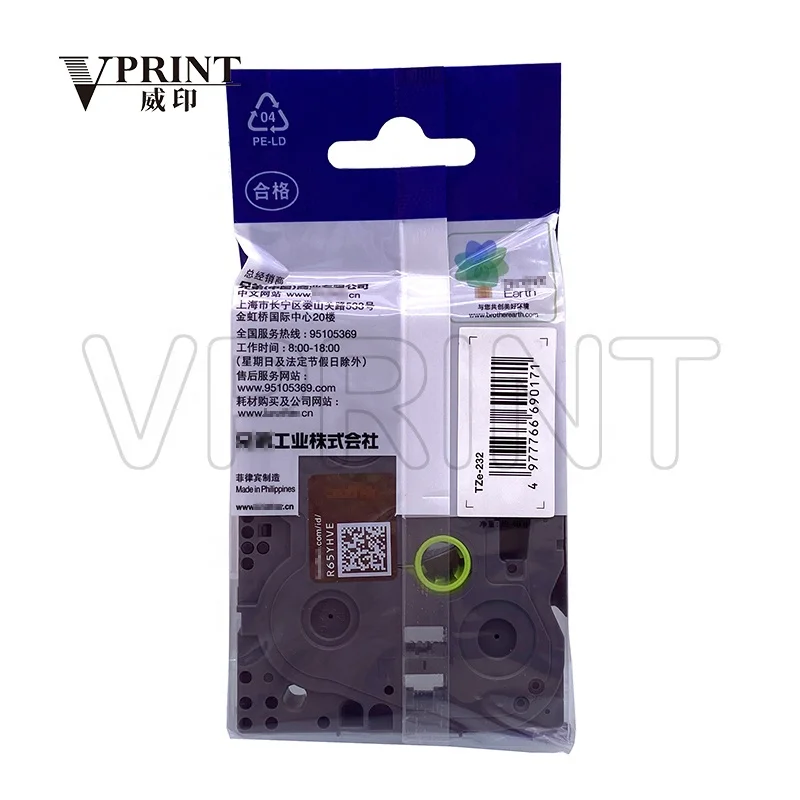 TZE-232 12mm 0.47" Red on White P-touch Laminated Label Tape Printer Supplies for Brother GL-100 PT 1000 1010 1090 Original